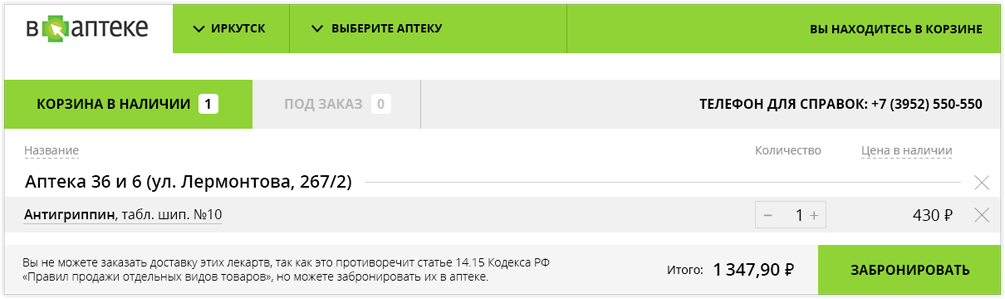 пока он точно находится в аптеке, забронируйте его с помощью «В Аптеке»